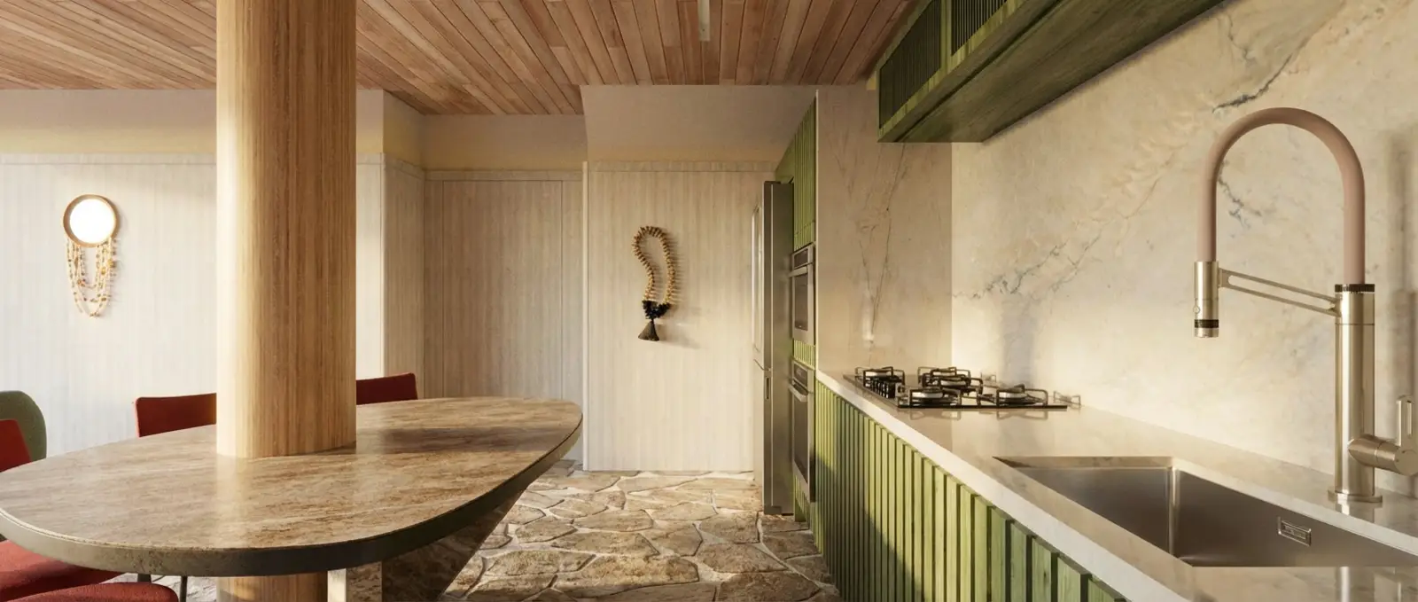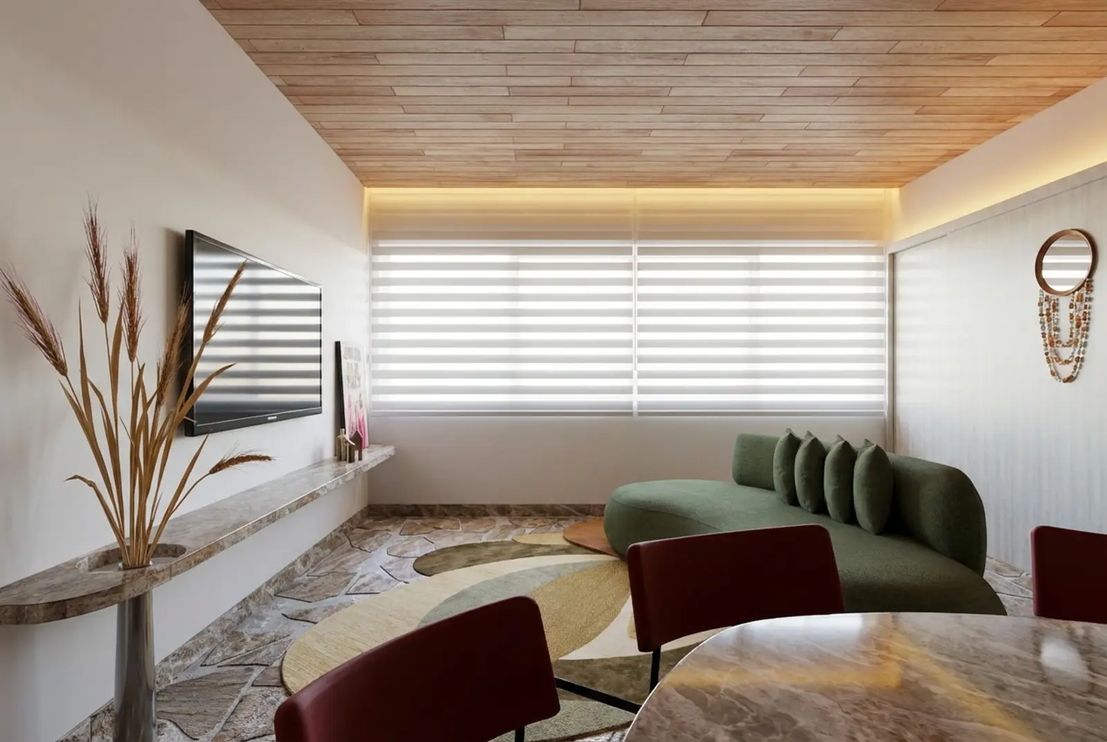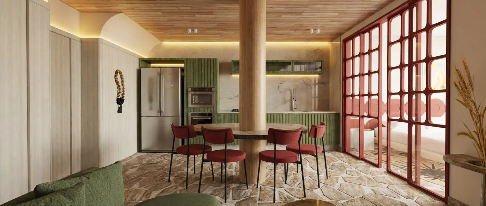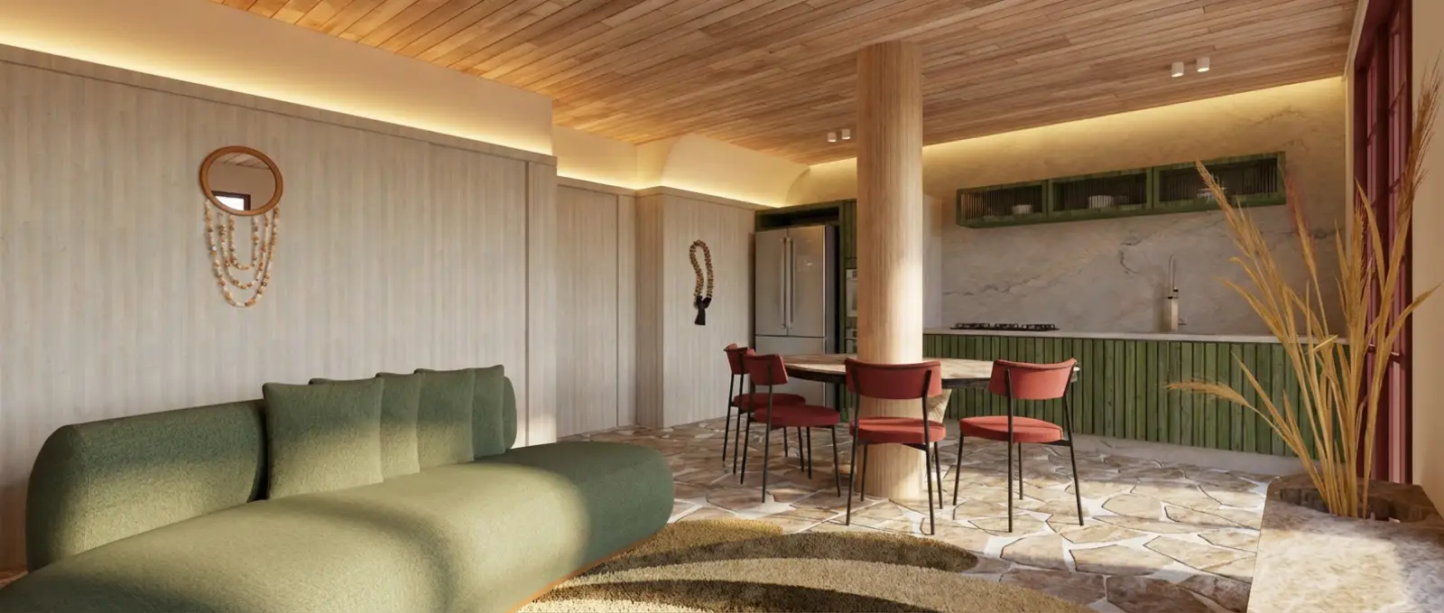 O Apartamento Refúgio nasce do encontro entre cor e sobriedade, um equilíbrio delicado entre presença e silêncio. Idealizado para o concurso ArchaPro, o projeto mergulha na sintonia que a pedra natural desperta no morar contemporâneo. É uma composição de essências que se entrelaçam em matéria e memória. Cada elemento conversa com o outro, criando uma atmosfera que acolhe, envolve e permanece.