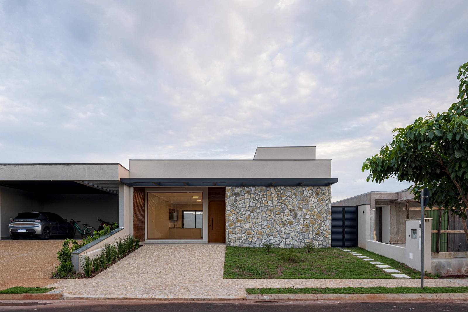 A casa ribeirão foi um projeto idealizado para investimento, os futuros donos da casa terão espaços completamente projetados e integrados. A fachada contemporânea é refletida pela mistura de materiais atemporais como a madeira, ferro e pedras naturais.